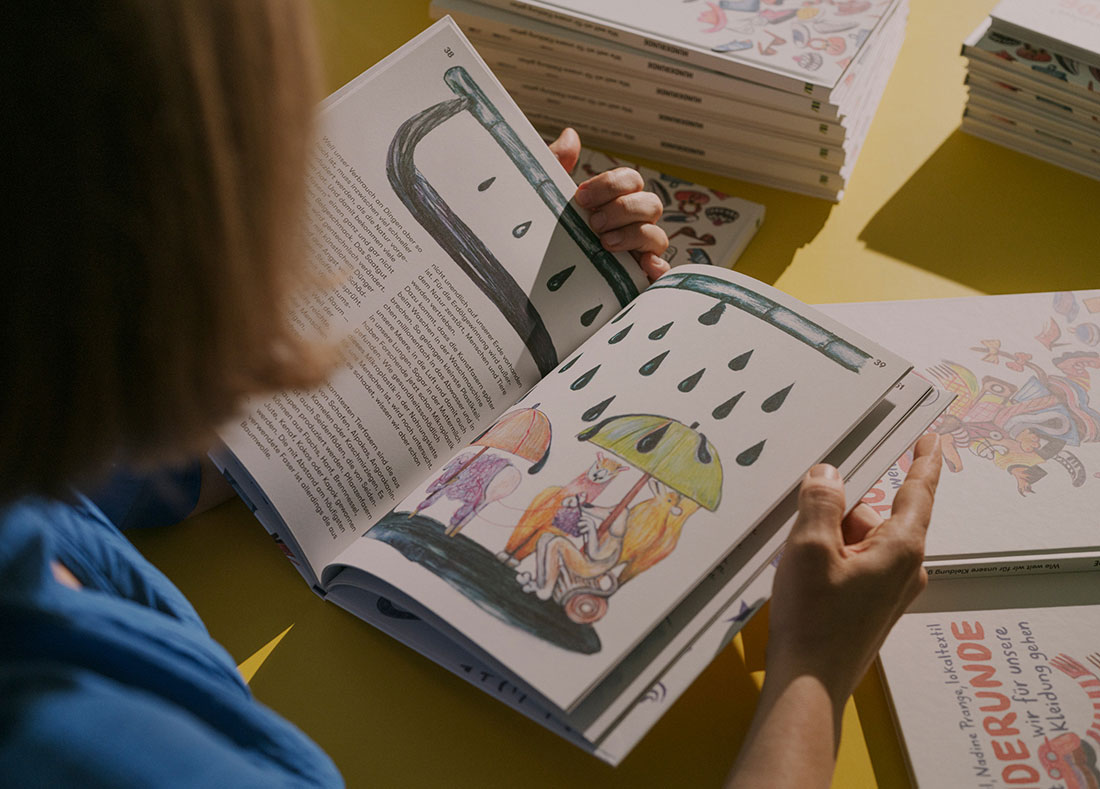 Ein Kleiderschrank geht auf – und plötzlich beginnt ein Gespräch. Über Baumwolle, Markennamen, Kinderarbeit, Muster, Geschichte, Konsum. „Hunderunde“ ist ein illustriertes Sachbuch, das Kindern ab neun Jahren erklärt, wie eng Kleidung mit unserem Leben, unserer Umwelt und unserem Miteinander verwoben ist.