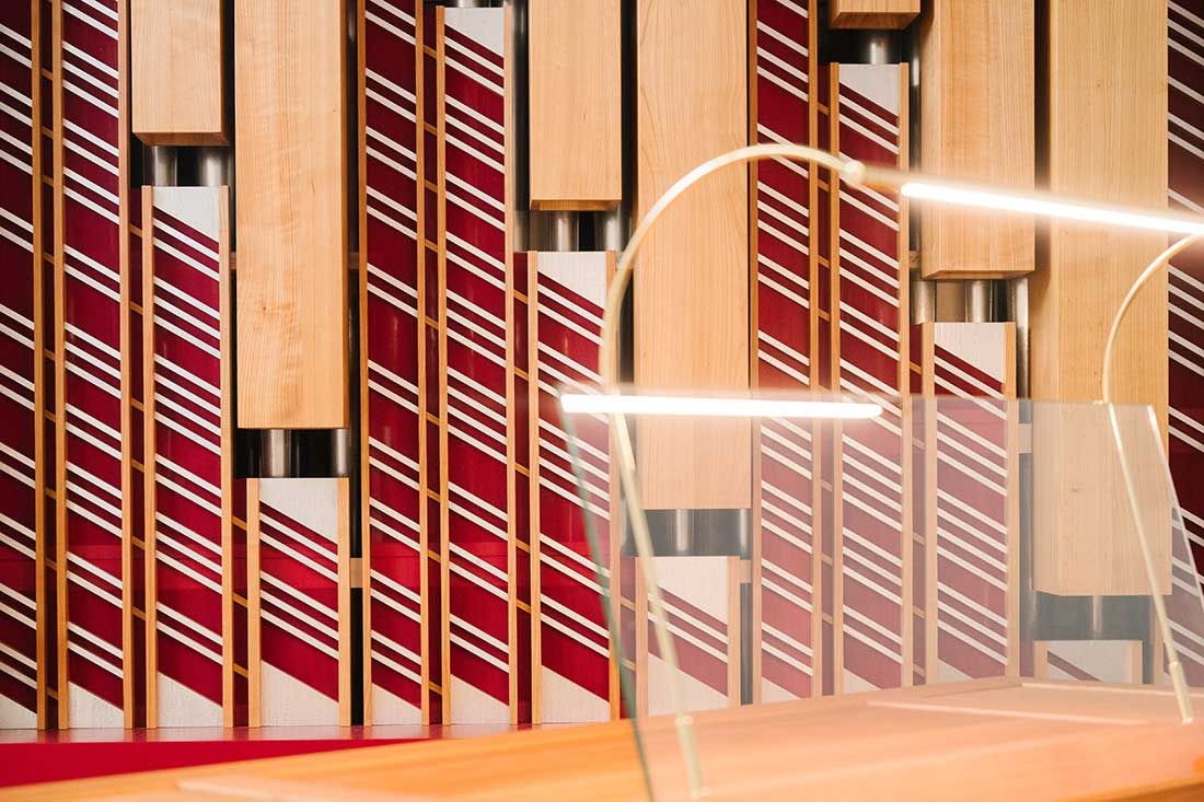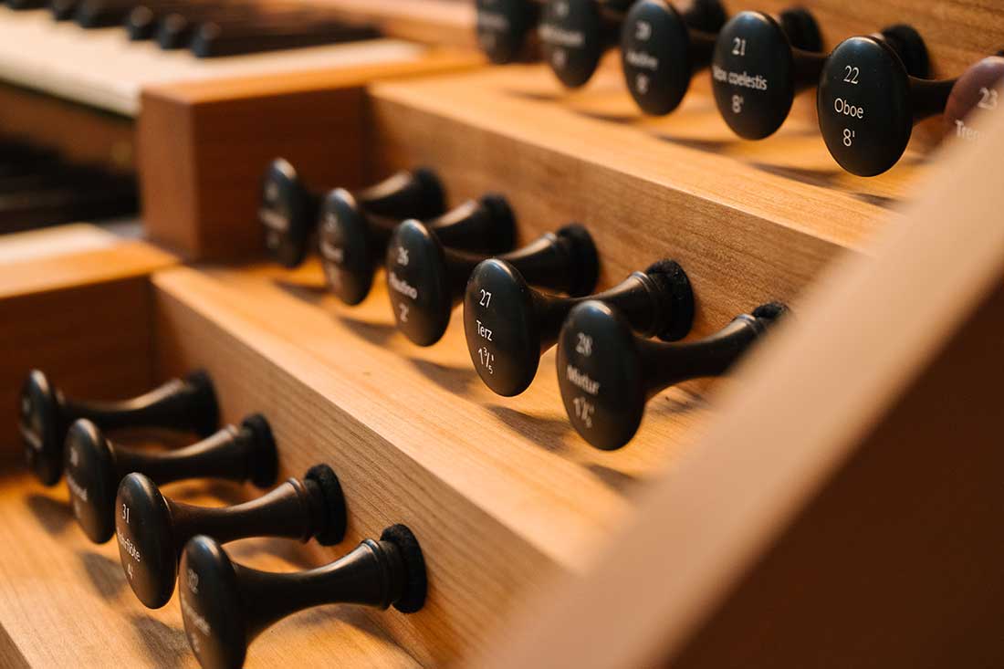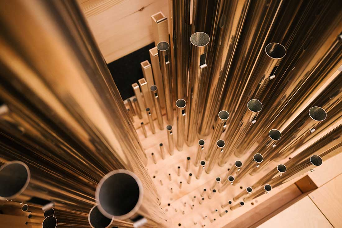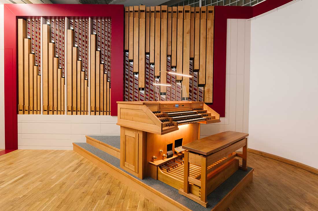 Der Firma Rieger ist es gelungen, auf engstem Raum eine Orgel mit drei Manualen und Pedal, 21 Registern mit rund 1.350 Pfeifen und modernster Steuerungselektronik zu realisieren. Die Register wurden sorgfältig von Lehrenden und Orgelbauern ausgewählt und die Intonation auf Raumgröße sowie Stilrichtungen optimiert. Im November 2025 konnte das neue Instrument in Betrieb genommen werden.