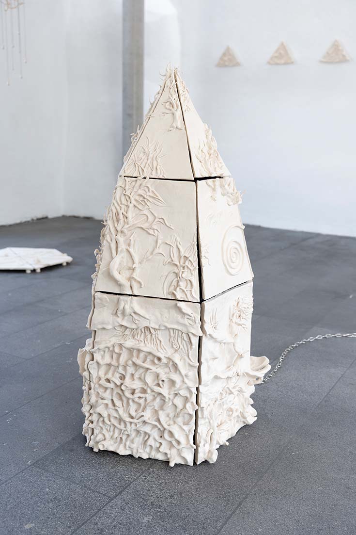 Zwischen handwerklicher Präzision und zarter Poetik laden Moscos Arbeiten Betrachtende ein, eigene Geschichten in der Fragilität der Keramik zu entdecken. © HfG Offenbach